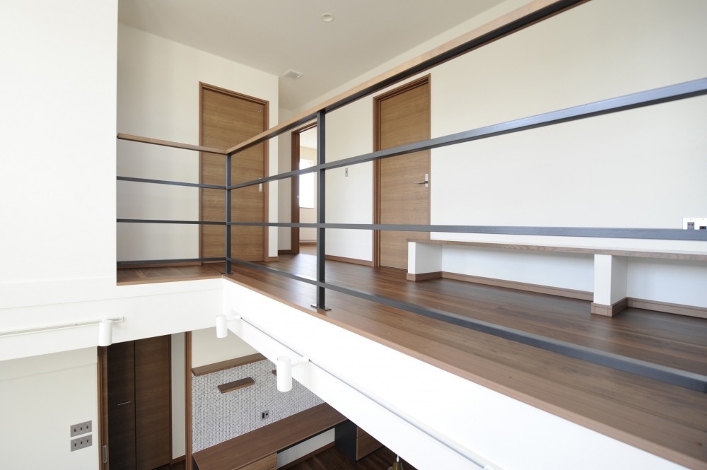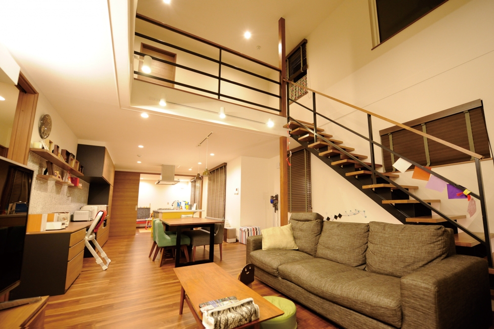 子どもがキッチンのまわりや2階をぐるぐると走り回り、その姿を見守りながら大人も寛いで過ごせます。