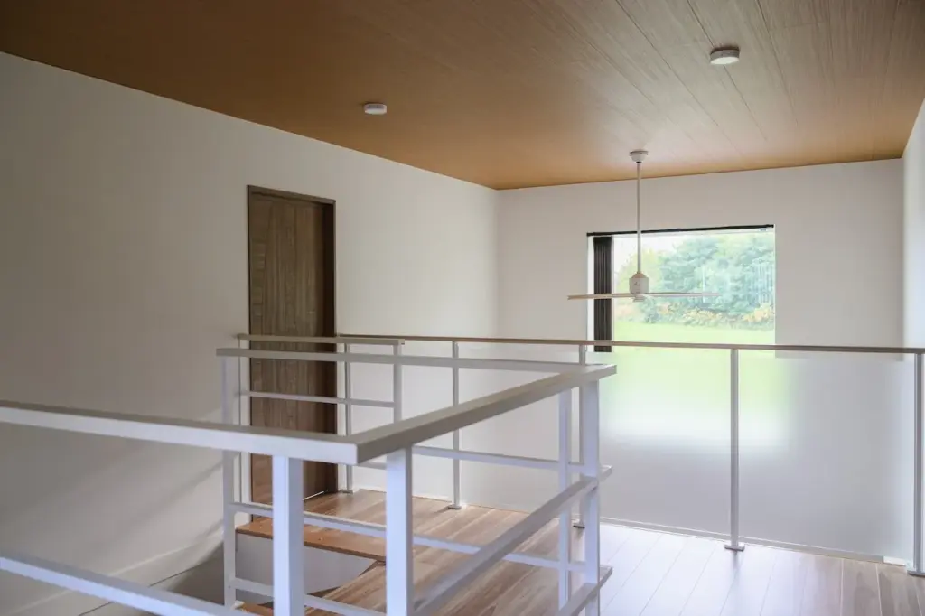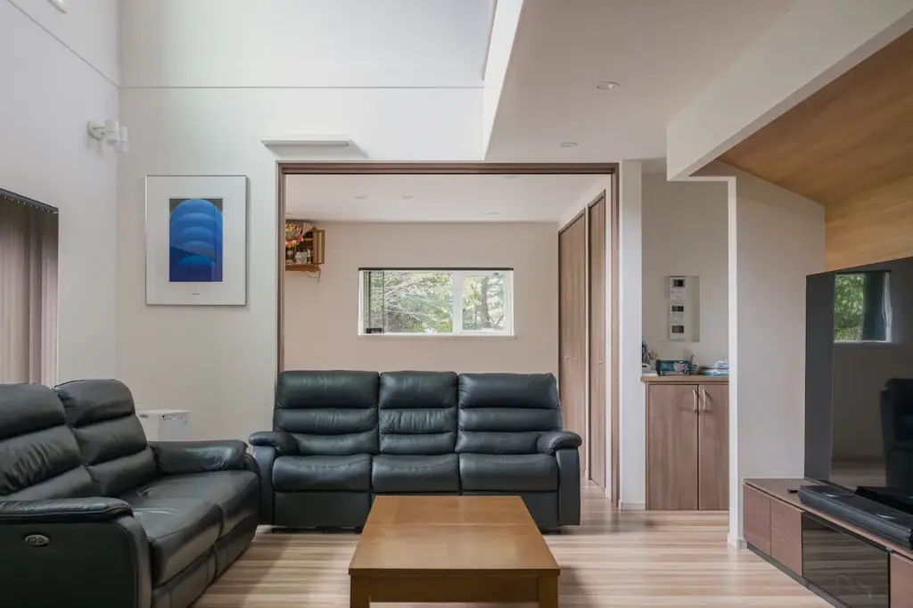 穏やかな街並みに、吹き抜けの光が映える江別の住まい